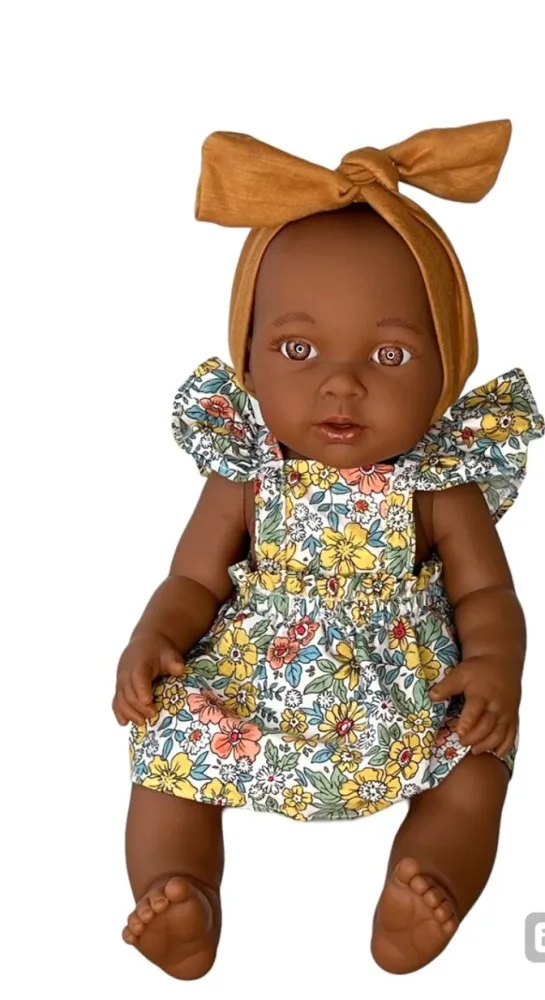 Elle est une magnifique bébé fille sans cheveux. Elle a les yeux fixes et mesure 32cm. Elle est recommandée pour les enfants à partir de 10 mois. Vêtements lavables Utiliser un chiffon humide pour nettoyer le visage ou le corps. N'appliquez pas de fer à lisser sur les cheveux. Utiliser un peigne afro ou utiliser les mains pour la coiffure. Vous pouvez laver les cheveux ( bien que non recommandé). Nos poupées sont fabriquées en Espagne. Les matériaux utilisés pour la réalisation des poupées sont de très haute qualité et garanti sans phtalates avec un parfum subtile à la vanille. -Corps articulé -Anatomiquement correct -Taille : 32cm -Pois : 500h -Age : 3ans et plus