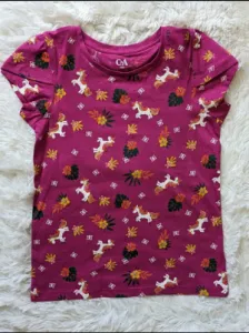 Fleuri avec dessin de licorne sur fond violet...9ans...
