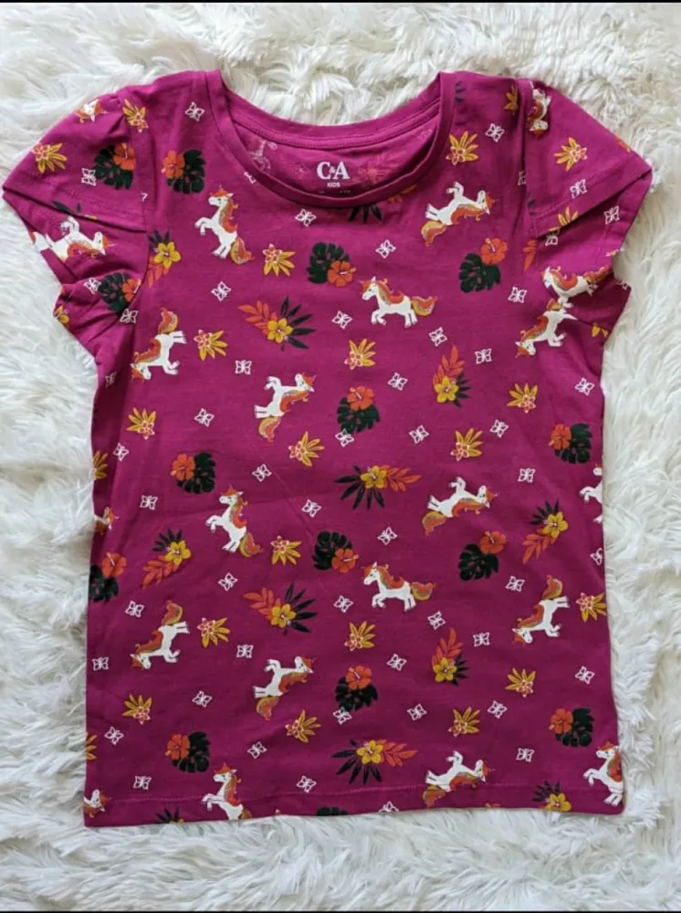 Fleuri avec dessin de licorne sur fond violet...9ans