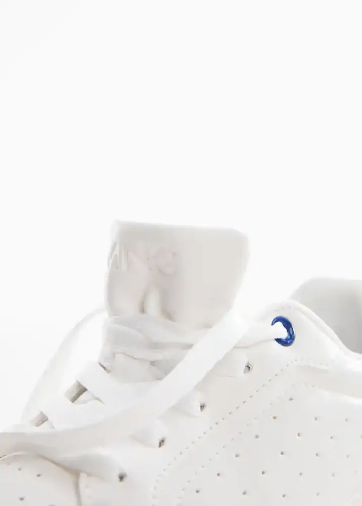 De couleur blanche avec lacets et semelle bleu